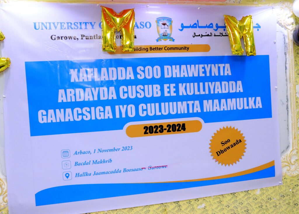 Waxaa caawa la qabtay xaflada soo dhowaynta ardayda cusub ee Kulliyadda Ganacsiga iyo Culuumta maamulka, University of Bosaso – Garowe Ardayda cusub waxay ka kooban yihiin 4 qaybood,