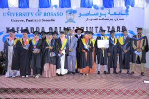 University of Bosaso – Garowe: Munaasibad si heer sare ah loo soo Agaasimay oo ay ku qalin jabinayeen Ducaddii 7-aad ee Ardayda Jaamacadda Boosaaso Garowe ayaa ka dhacday gudaha Jamaacdda, taas oo shahaadooyin iyo abaalmarrino lagu guddoonsiiyay Ardaydii kaalmaha Sare ka galay sanad Jaamacadda.