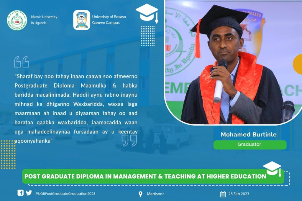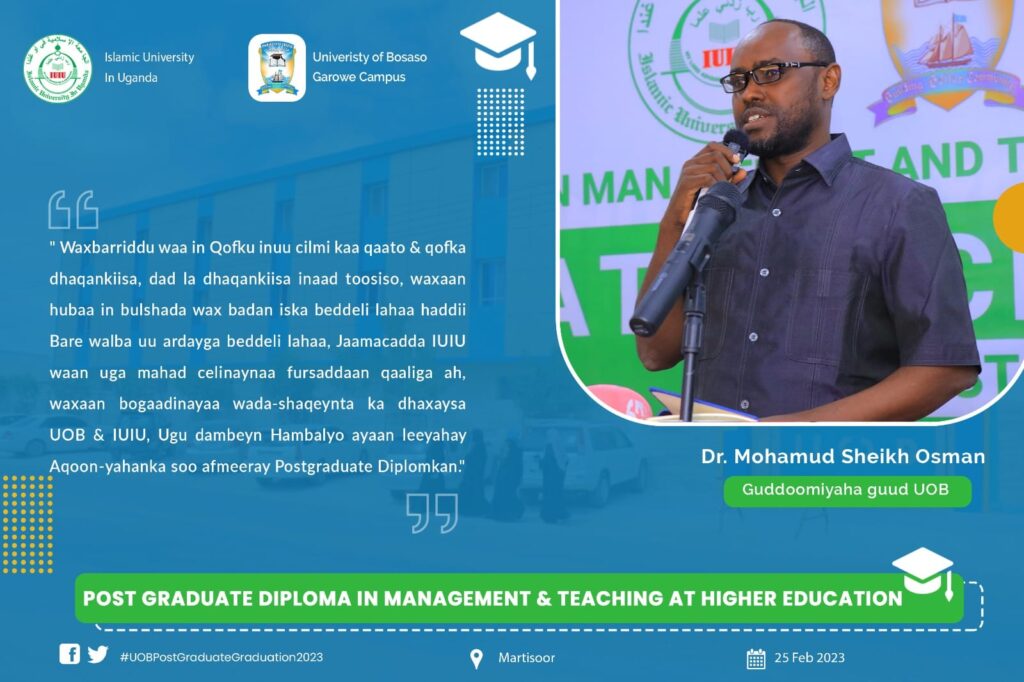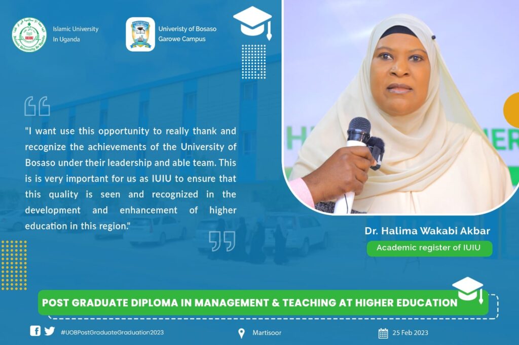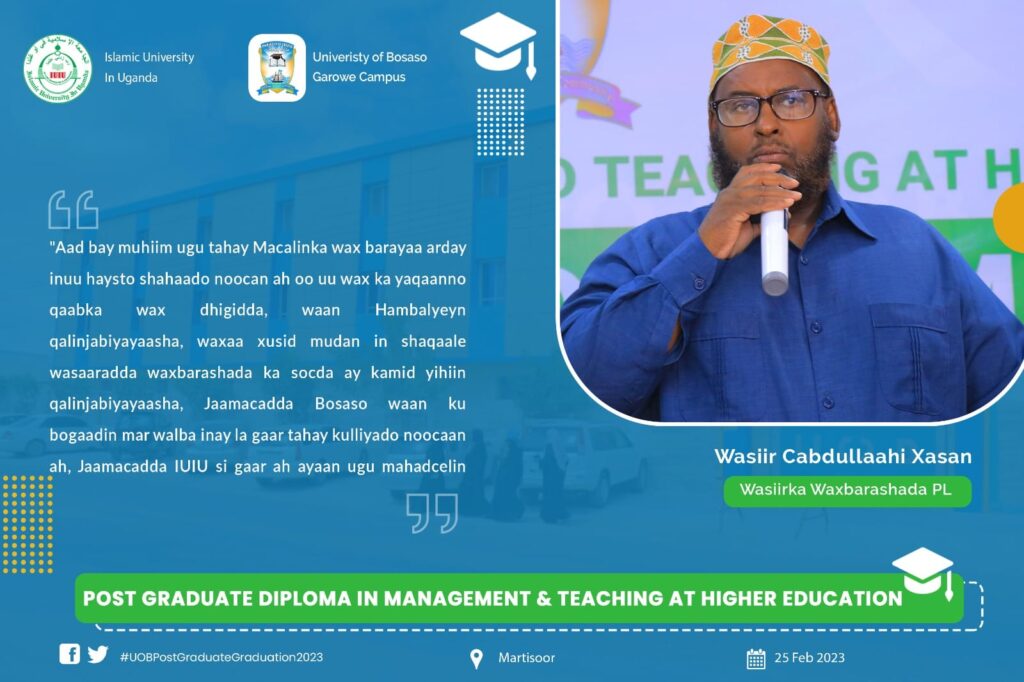 Jaamacadda Boosaaso, Garoowe, ayaa ka qayb gashay shirwayahan waxbarashada qaran oo ka soconaya magaalada Muqdisho ee caasimadda dalkeena. Inta shirku socday waxaa lagu lafo guray sooyaalka waxbarashada, horumarka waxbarashada laga sameeyey, caqabadaha jira iyo hanaanka hufan ee lagu horumarinayo waxbarashada dalkeena. University of Bosaso – Garowe sawiro